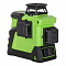 Лазерный уровень RGK PR-3G проецирует горизонтальную и 2 вертикальные линии. Лазерный луч зеленого цвета хорошо различим при ярком солнечном освещении и на поверхностях темного цвета.